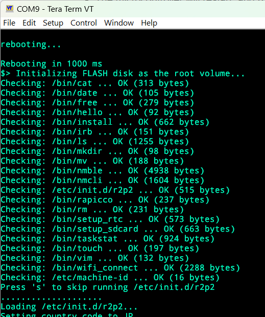 command here - The microcontroller will restart, and R2P2’s initialization process should be displayed on the terminal